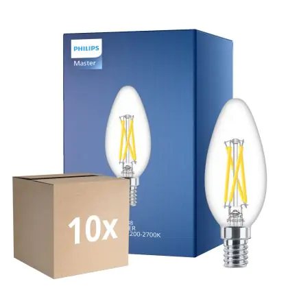 Descrizione Confezione Multipack 10x Philips MASTER LED E14 Candela Filamento Chiara 2.5W 340lm - 922-927 Dim To Warm | Miglior Resa Cromatica - Dimmerabile - Sostitutiva 25W