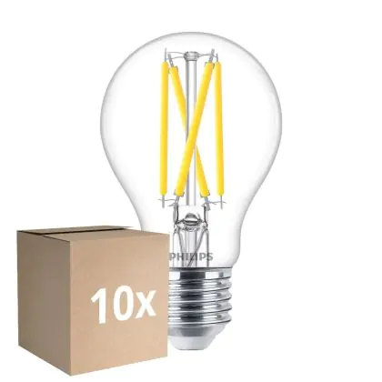 La Confezione Multipack 10x Philips Master LED E27 Pera Filamento Chiara 5.9W 806lm - 922-927 Dim To Warm | Miglior Resa Cromatica - Dimmerabile - Sostitutiva 60W è la perfetta sostituzione per la tua lampada convenzionale 60W con attacco E27 grazie alla sua tecnologia LED. Passare a LED ti offrirà tanti vantaggi!