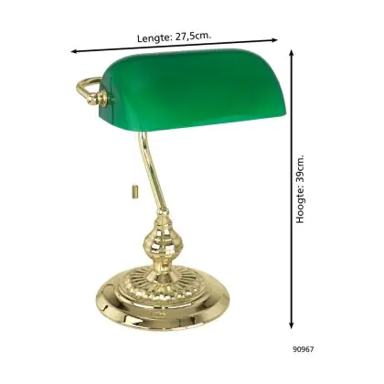 Eglo Lampada Da Tavolo Banker Acciaio Oro Verde | IP20 - Adatto per 1x E27