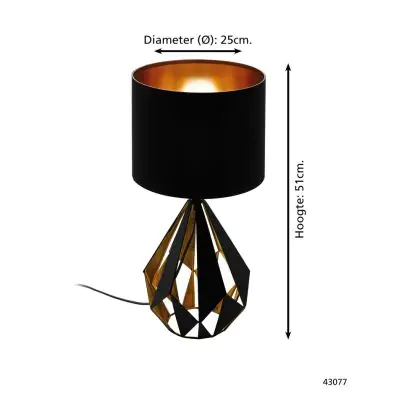 Eglo Lampada Da Tavolo Carlton 5 Acciaio Nero Rame | IP20 - Adatto per 1x E27