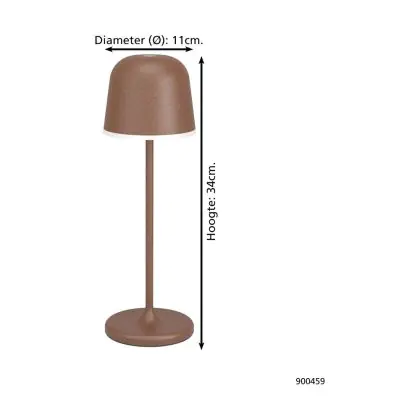 Descrizione Eglo Lampada Da Tavolo Mannera Aluminium Arrugginito 2W 200lm - 830 Luce Calda - | IP54 - Touch Dimmerabile - USB-C