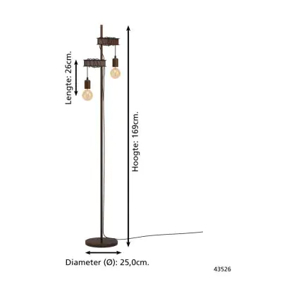 Eglo Lampada da terra Townshend 4 Acciaio Marrone Nero | IP20 - Adatto per 2x E27