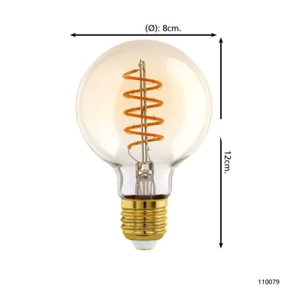 Descrizione Eglo LED Globe E27 Filamento Ambra 4W 245lm - 820 Bianco Molto Caldo | Dimmerabile - Sostitutiva 25W