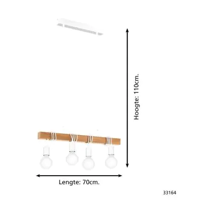 Eglo Luce Pendente Townshend Acciaio Bianca Legna | IP20 - Adatto per 4x E27