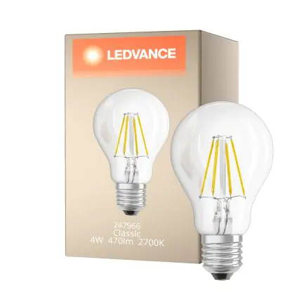 Descrizione Ledvance Classic LED E27 Pera Filamento Chiara 4W 470lm - 827 Bianco Molto Caldo | Sostitua 40W