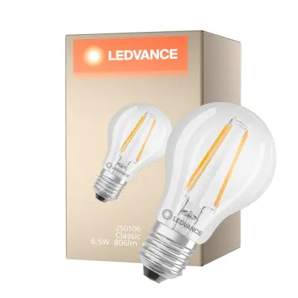 La Ledvance Classic LED E27 Pera Filamento Chiara 6.5W 806lm - 840 Bianco Freddo | Sostitutiva 60W è la perfetta sostituzione per la tua lampada convenzionale 60W con attacco E27 grazie alla sua tecnologia LED. Passare a LED ti offrirà tanti vantaggi!