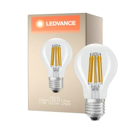 La Ledvance Classic LED E27 Pera Filamento Chiara 7.2W 1521lm - 827 Bianco Molto Caldo | Sostitutiva 100W è la perfetta sostituzione per la tua lampada convenzionale 100W con attacco E27 grazie alla sua tecnologia LED. Passare a LED ti offrirà tanti vantaggi!