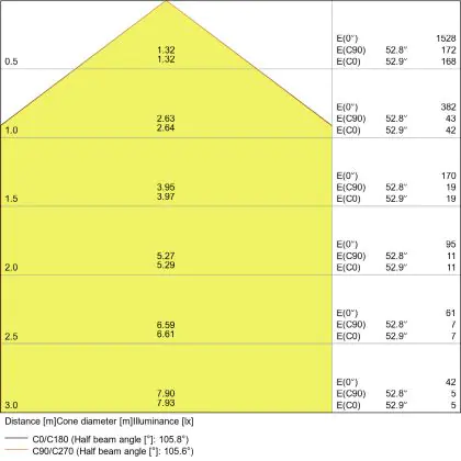 L'apertura del fascio luminoso indica l'angolo del fascio di luce proveniente da una lampada o lampadina. Si misura in gradi (D) e più piccolo è l'angolo, più piccola è l'apertura del fascio di luce.