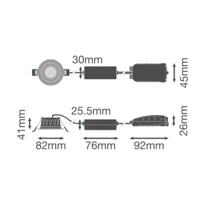 Descrizione Ledvance Faretti LED Combo Aluminium Nero 6W 600lm 60d - 927 - 930-940 CCT | 82mm - Ritaglio 68mm - IP65 - Dimmerabile