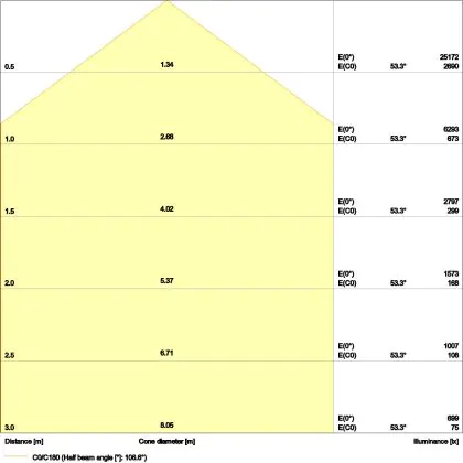 L'apertura del fascio luminoso indica l'angolo del fascio di luce proveniente da una lampada o lampadina. Si misura in gradi (D) e più piccolo è l'angolo, più piccola è l'apertura del fascio di luce.