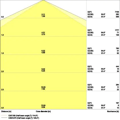 L'apertura del fascio luminoso indica l'angolo del fascio di luce proveniente da una lampada o lampadina. Si misura in gradi (D) e più piccolo è l'angolo, più piccola è l'apertura del fascio di luce.