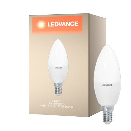 La lampada Ledvance Smart+ Wifi E14 Sun@home (HCL) Candela Classic 4.9W 425lm - 827-865 Regolabile Bianca | Dimmerabile - Sostitutiva 40W è il sostituto perfetto per le tue vecchie lampade 50W con attacco a vite piccolo E14 grazie alla sua tecnologia LED. Passare a LED ti offrirà molti vantaggi!