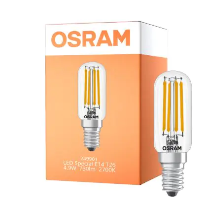 La lampada Osram LED Special E14 Tubular Bulbo T26 Filamento Chiara 4.9W 730lm - 827 Bianco Molto Caldo | Sostitutiva 55W è il sostituto perfetto per le tue vecchie lampade 55W con attacco a vite piccolo E14 grazie alla sua tecnologia LED. Passare a LED ti offrirà molti vantaggi!