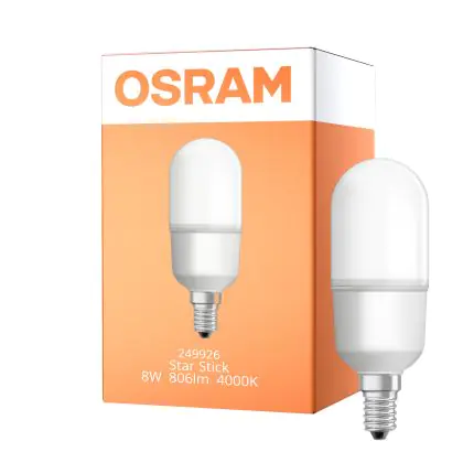 La lampada Osram LED Star Stick E14 Ghiaccio 8W 806lm - 840 Bianco Freddo | Sostitutiva 60W è il sostituto perfetto per le tue vecchie lampade 60W con attacco a vite piccolo E14 grazie alla sua tecnologia LED. Passare a LED ti offrirà molti vantaggi!