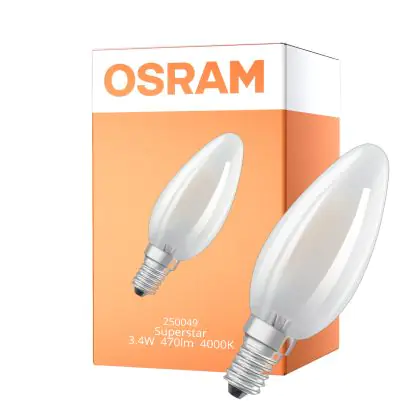 La lampada Osram LED Superstar E14 Candela Filamento Ghiaccio 3.4W 470lm - 940 Bianco Freddo | Miglior Resa Cromatica - Dimmerabile - Sostitutiva 40W è il sostituto perfetto per le tue vecchie lampade 40W con attacco a vite piccolo E14 grazie alla sua tecnologia LED. Passare a LED ti offrirà molti vantaggi!