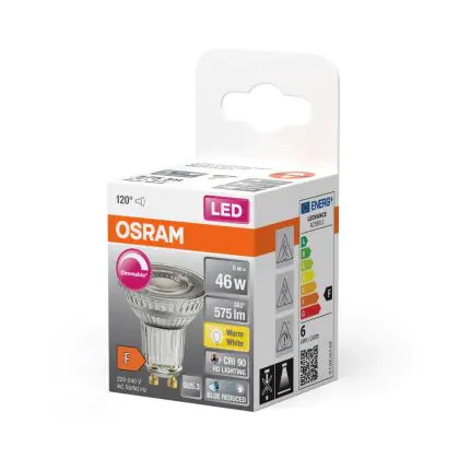 Puoi risparmiare fino al 90% tra il risparmio di energia e I costi di mantenimento grazie al basso consume di soli 6W e la lunga vita media utile di 25000 ore, comparandola invece con una lampada alogena GU10 con la sola durata di 2.000 ore. Inoltre le lampade LED non producono raggi IR e raggi UV dannosi per noi esseri umani tutto questo senza neanche produrre calore! Installarla è veramente semplice: ruotare la vecchia lampada GU10 di un quarto e rimuoverla dall’attacco. Successivamente inserire la lampada LED GU10 nell’attacco e girarla di un quarto per installarla. Questa è lampada di alta qualità Osram e parte da un prezzo di . Puoi usare questo prodotto come desideri grazie alla nostra garanzia totale di4 anni da Lampadadiretta.it.