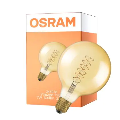 La Osram Vintage 1906 LED E27 Globe Filament Gold 125mm 7W 600lm - 822 Extra Warm White | Dimmable è la perfetta sostituzione per la tua lampada convenzionale 48W con attacco E27 grazie alla sua tecnologia LED. Passare a LED ti offrirà tanti vantaggi!