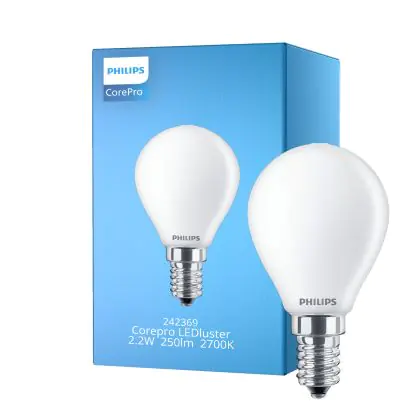La lampada Philips Corepro LED Lustre E14 Sferica Ghiaccio 2.2W 250lm - 827 Bianco Molto Caldo | Sostitutiva 25W è il sostituto perfetto per le tue vecchie lampade 25W con attacco a vite piccolo E14 grazie alla sua tecnologia LED. Passare a LED ti offrirà molti vantaggi!