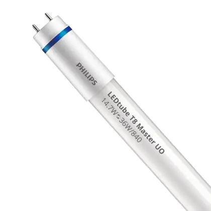 Il Philips Tubo LED T8 MASTER (EM/Mains) Ultra Output 14.7W 2500lm - 840 Bianco Freddo | 120cm - Sostitutiva 36W è l’alternativa perfetta per il tubo fluorescente standard 36W nelle plafoniere con un reattore. Con questo tubo LED hai una garanzia di una vita media utile molto lunga e 5 anni Lampadadiretta.it di totale garanzia. .