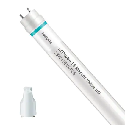 Il Philips Tubo LED T8 MASTER Value (EM/Mains) Ultra Output 23W 3700lm - 865 Luce del Giorno | 150cm - Sostitutiva 58W è l’alternativa perfetta per il tubo fluorescente standard 58W nelle plafoniere con un reattore. Con questo tubo LED hai una garanzia di una vita media utile molto lunga e 5 anni Lampadadiretta.it di totale garanzia. .